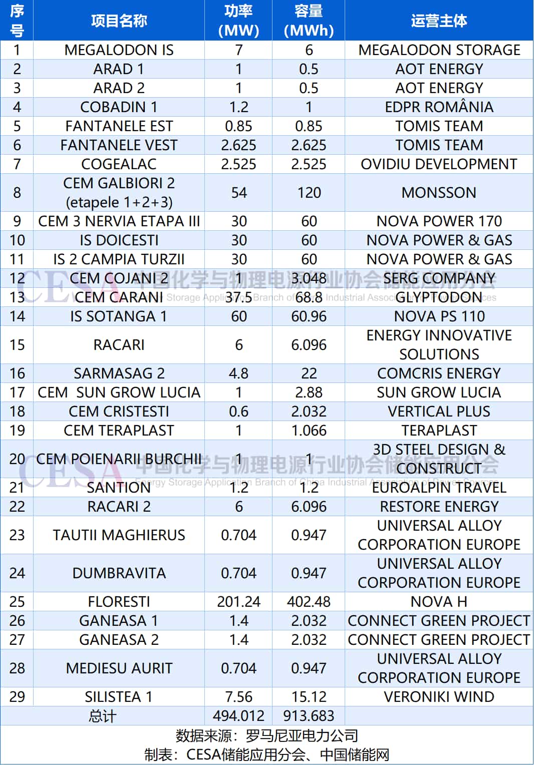 The table below presents Romania's large-scale, grid-connected battery energy storage projects as of December 5, 2025.